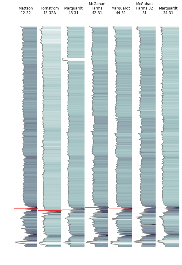 Reproducible notebook to generate cross sections from well logs by Jesse Pisel
