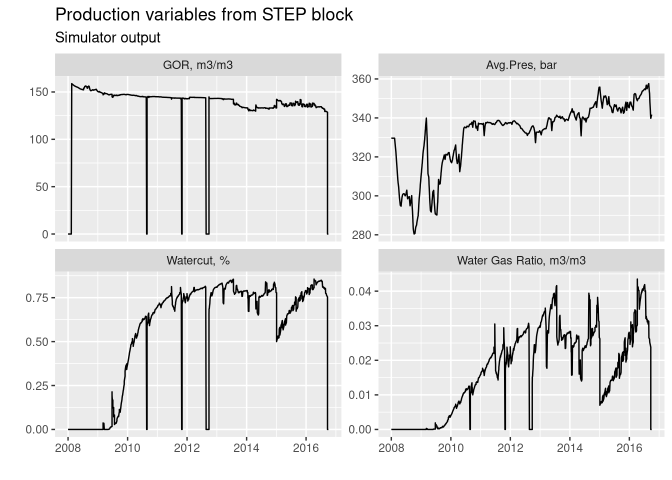 In the previous article, we extracted the field totals, or cumulatives, from the text blocks with the keyword BALANCE AT in the PRT file; produced volumes of oil, gas and water as well as the COIP, or currently oil in place. There is another block of interest in the text file, that we could call the STEP block. This block contains instantaneous production variables such as GOR, watercut, WGR and the average bottomhole pressure (PAV). WHat we are looking here is to improve the current dataset from containing cumulative volumes to include these new production variables. In other other words, we want a more comprehensive dataset that we could use as part of a machine learning algorithm later.