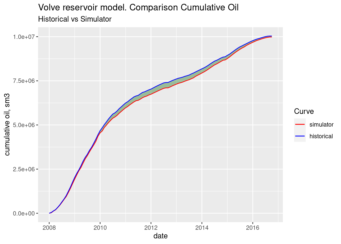 labs(title = "Volve reservoir model. Comparison Cumulative Oil",