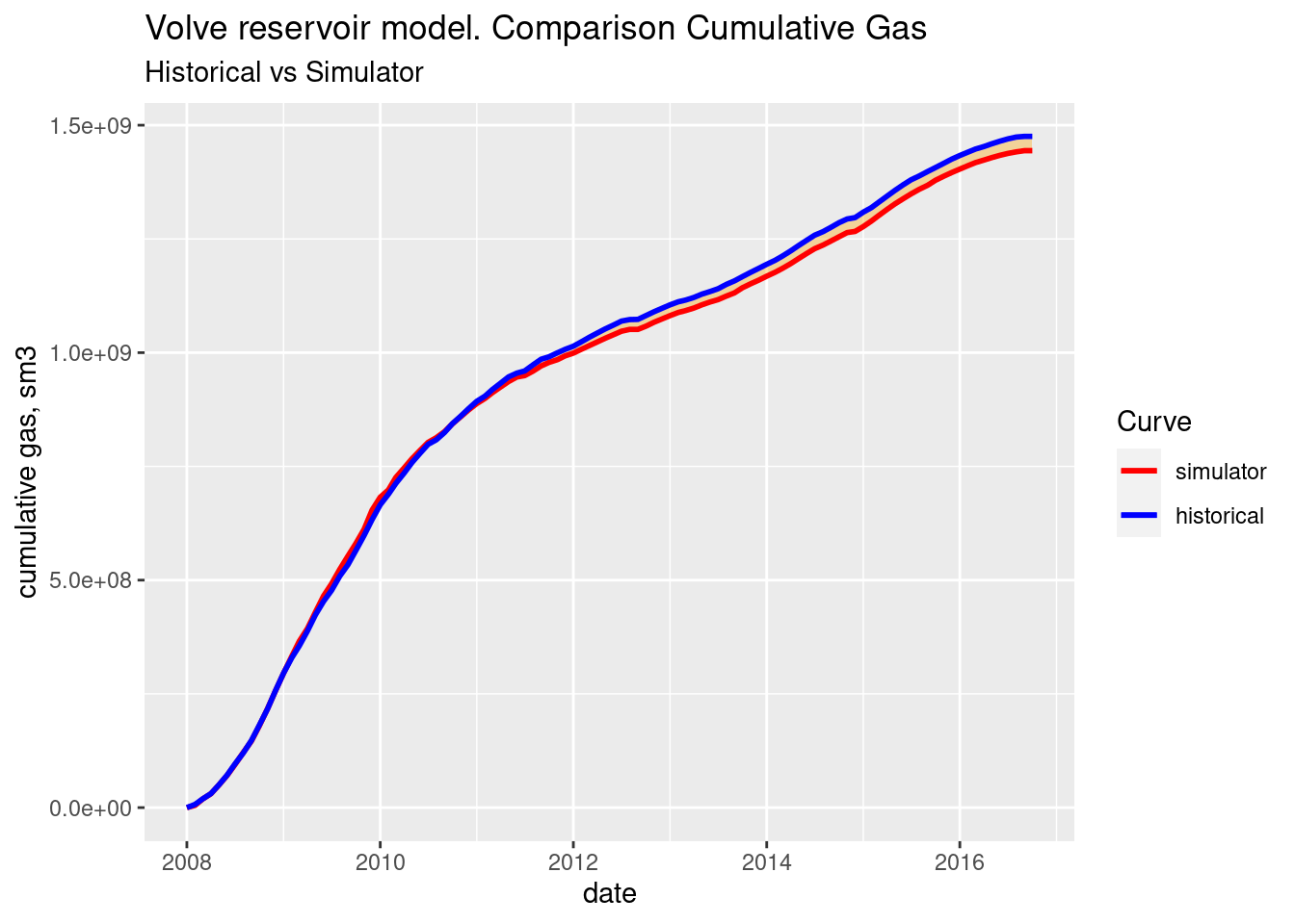 labs(title = "Volve reservoir model. Comparison Cumulative Gas",