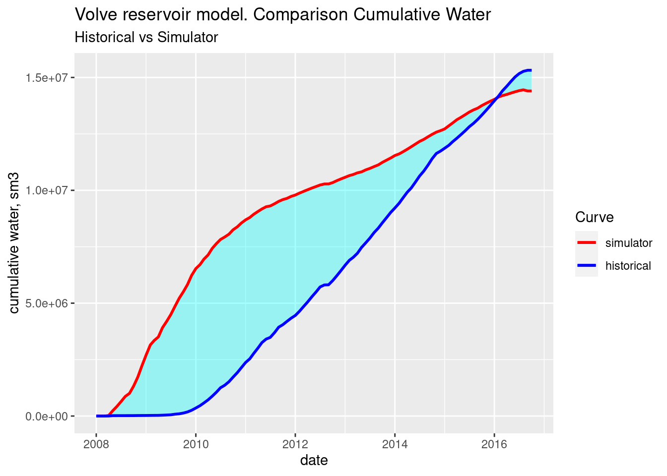 labs(title = "Volve reservoir model. Comparison Cumulative Water",