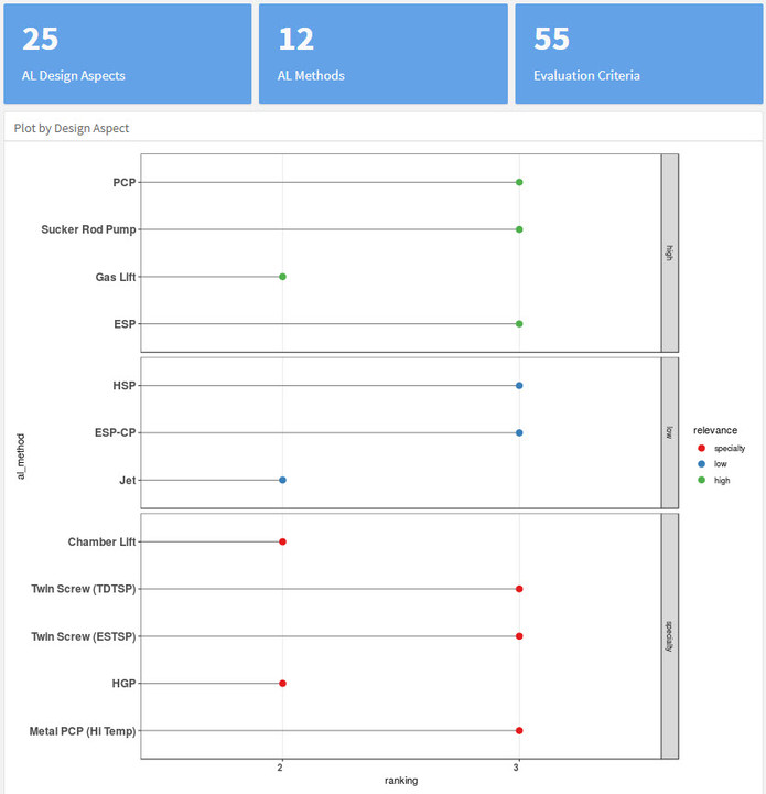 The selection tool may grow over time with feedback from the community of petroleum engineers that desire to bring this application to a new level of completeness. It possibly will require adding additional Design Aspects and corresponding evaluation criteria.
