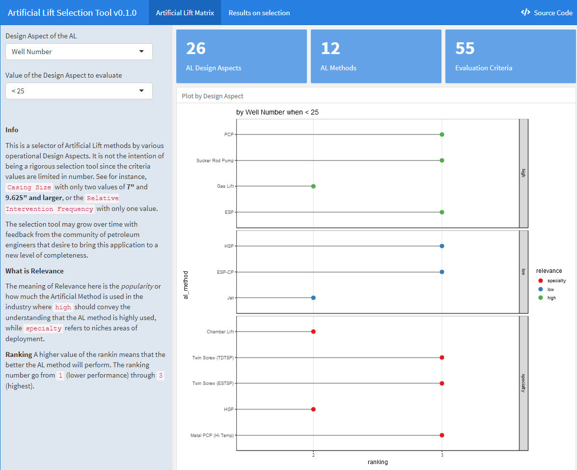 This Artificial Lift Selection Tool is web based and can be opened in your local browser. It can, of course, also published in a public Shiny server. Here is a link to the live application https://oil-gains-analytics.shinyapps.io/al_flex/.