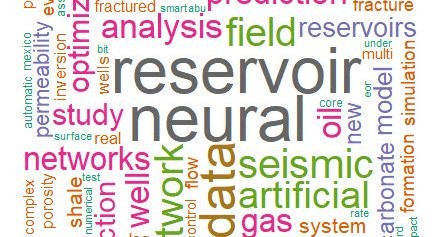 This is a cloud of keywords found in the same example I provided with the papers on “neural networks”. The plot above responds to the question: What are the keywords (subjects) more associated with “neural networks”? Remember, these are papers related to petroleum engineering.